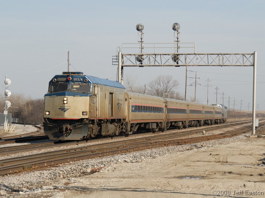 Hiawatha train 332 is cruising along at 79mph under the CP signal bridge at Rondout.