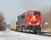The first of three BNSF/CP test trains returns empty from the Power Plant in Pleasant Prairie, Wi. The train symbol while on BNSF was BKMCIP0-01 with a routing from the Powder River Basin to Cicero, then a complex routing through the Chicago Switching District got it to the CP for the last leg of it journey. These test trains may help take the haulage contract away from the UP. |