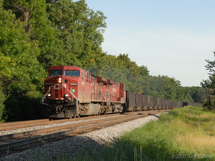 A couple of vetern GE's are taking this early morning eastbound coal train into Lake Forest.