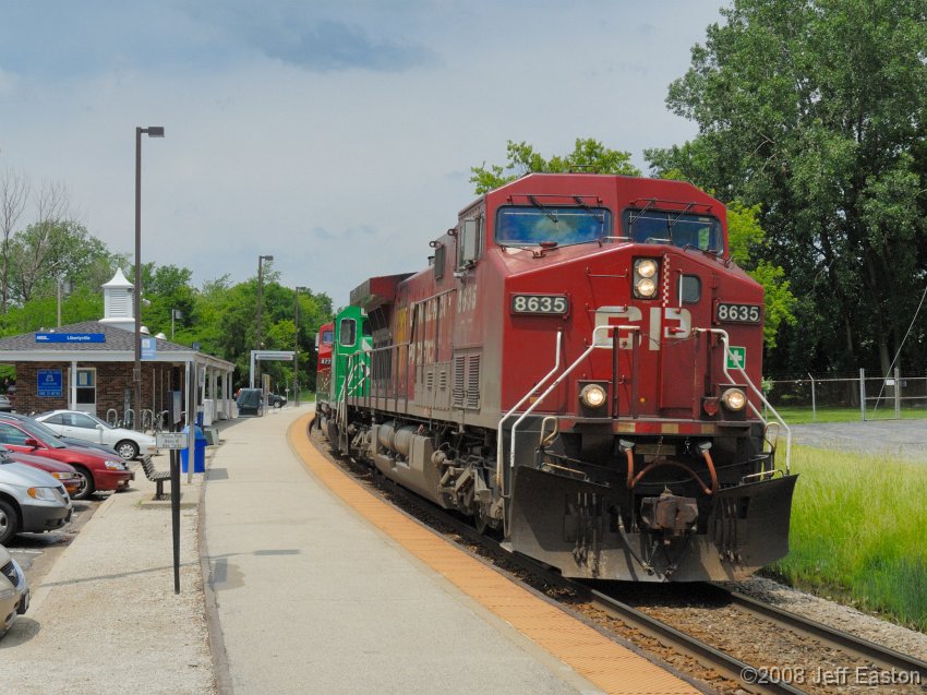 This train don't stop here... Another CP detour train off the WSOR is heading through Libertyville on the single tracked Fox Lake sub.
