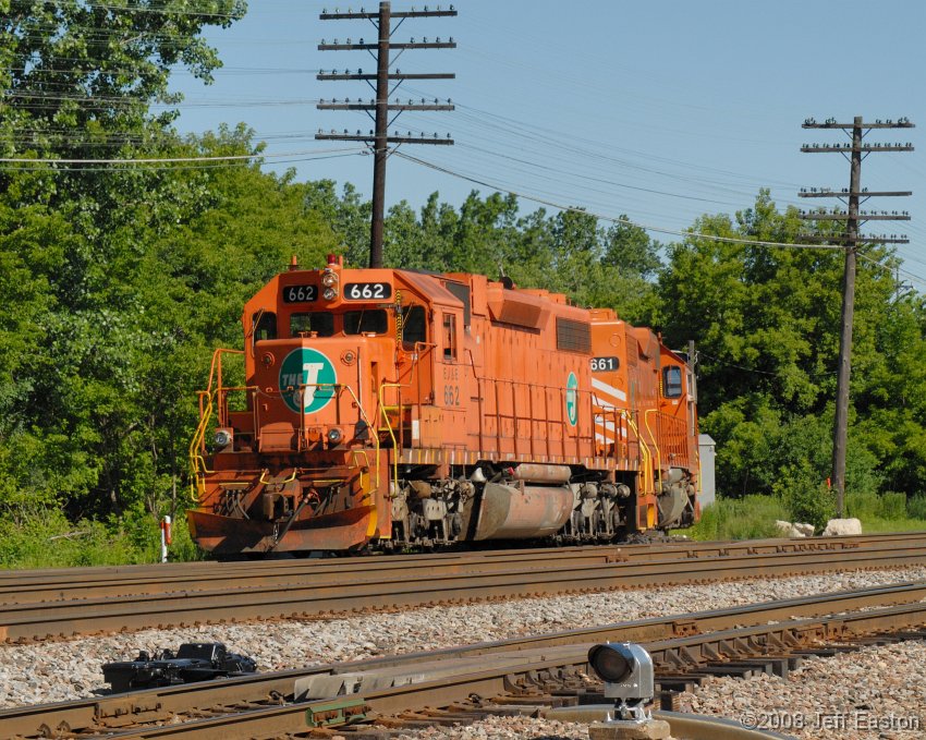 The Long West job is pulling down on the East leg of the wye to make room while switching out their cars in the yard. EJE 662 is one of the few SD38s left in the older J-ball scheme.