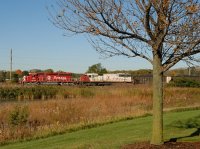 The INRD Roseport Coke train is running with three lease Montana Rail Link locomotives today, shown here throttling up for a run through Lake Forest. |