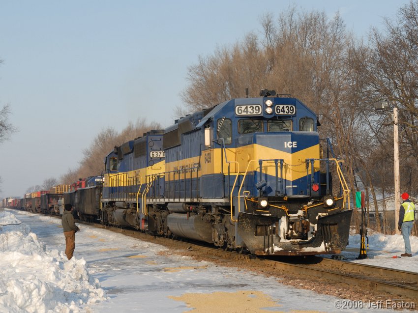 After dropping DME 6365 and 6078 on the west siding, train MNACC gets underway eastbound, with a warrent to Yard Limits Pingree Grove.