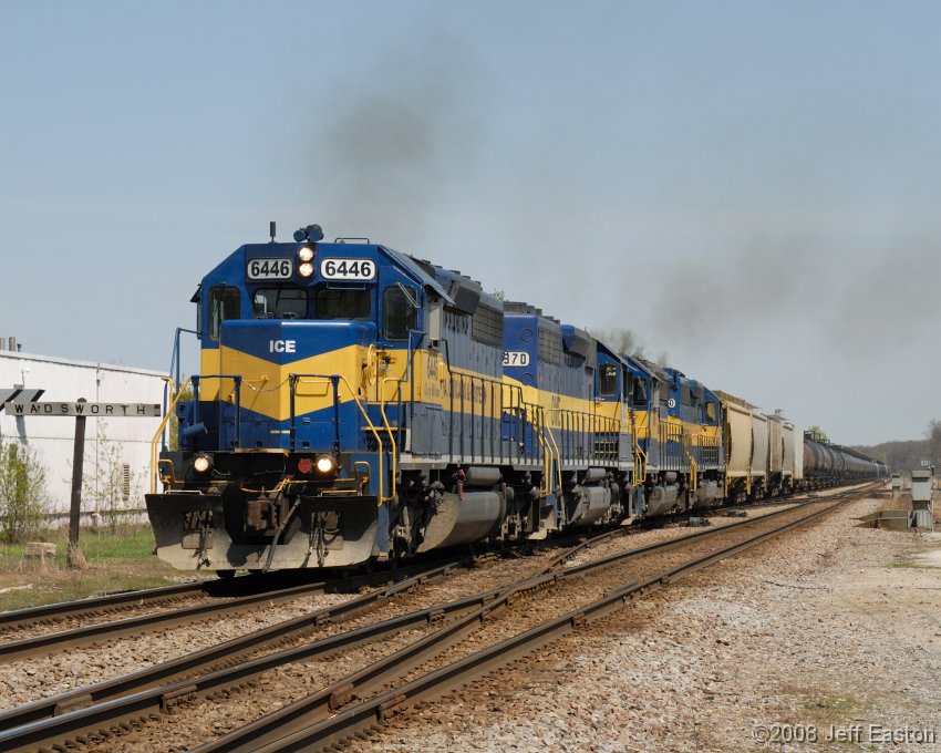 After waiting for things to clear up on the BRC, the detour train gets the signal at Wadsworth. 12000hp of EMD muscle strains to get this long Eastbound train moving again.