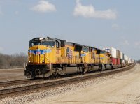 A UP trackage rights train is westbound on the BNSF Chillicothe Sub at Kernan. |
