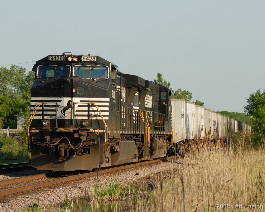 The hottest train on the UP across Wisconsin sits dead on the double track through Gurnee due to the tracks in Milwaukee being underwater.