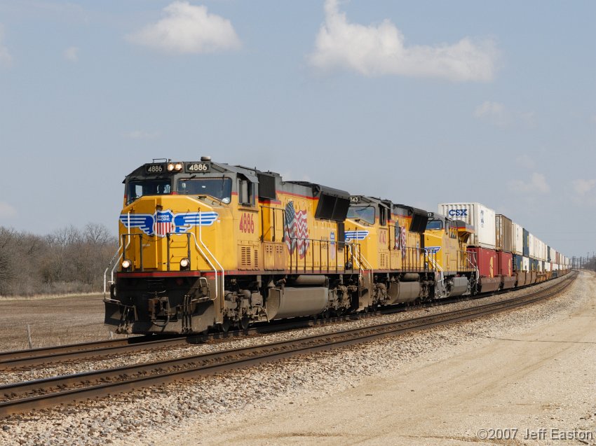 A UP trackage rights train is westbound on the BNSF Chillicothe Sub at Kernan.