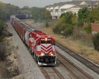 WSOR's first east bound CP trackage rights train from Milwaukee to Chicago rounds the bend South of Deerfield with WSOR's new SD40 in the lead. |