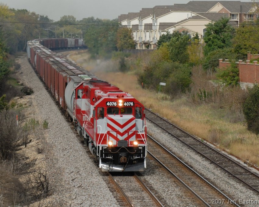 WSOR's first east bound CP trackage rights train from Milwaukee to Chicago rounds the bend South of Deerfield with WSOR's new SD40 in the lead.